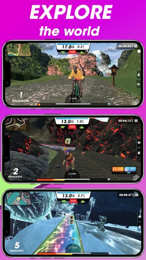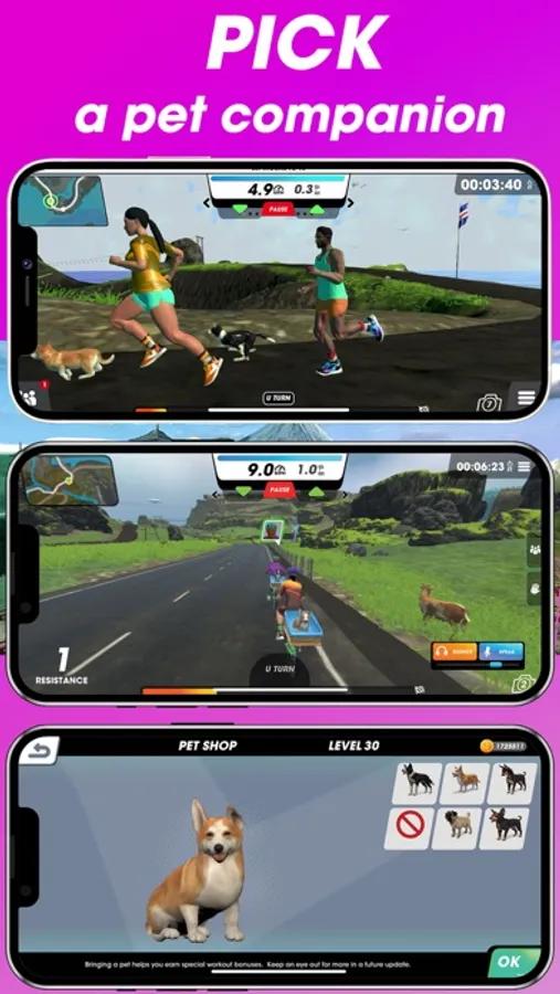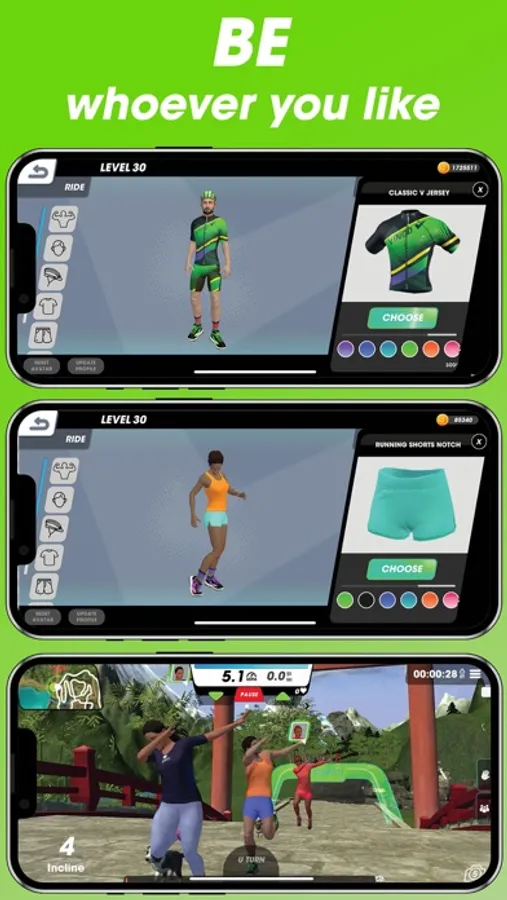 Snap a quick selfie and create an avatar that looks just like you. Or, start with a basic avatar and modify its physical features to your liking. It’s completely up to you! As you complete routes and advance to new levels, unlock cool gear, clothes, and bikes to show off your achievements. And for those who just can’t stand to leave your fur babies behind (you know who you are), you can even select a dog to run alongside you or sit in a basket on your ride.