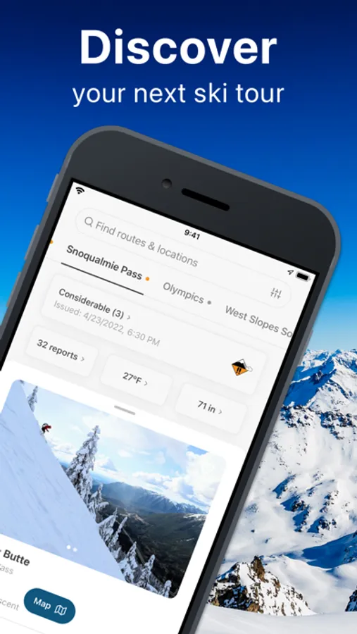 From low angle trees to steep couloirs, Backtrack helps you plan your next backcountry adventure. Ditch the crowds, head into the wilderness, and always know where you are with offline maps. Explore 800+ routes with forecasts, condition reports, observations, and photos in one consolidated platform.