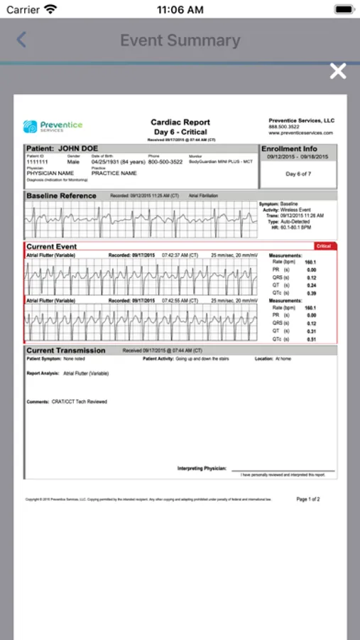 This is a tool to assist you as a decision-maker and to enhance your experience with the Preventice notification process. When a member of the Preventice team notifies you via phone call, you will have the option to view relevant patient information and event report on this app for 14 days.