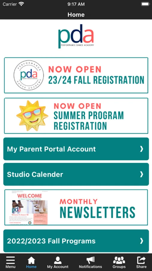 The Performance Dance Academy app allows our students and families to manage their account with ease, register for classes, access class resources, and stay on top of all events. You'll also receive important notifications about class changes, closings, registration openings, special announcements, and upcoming events.