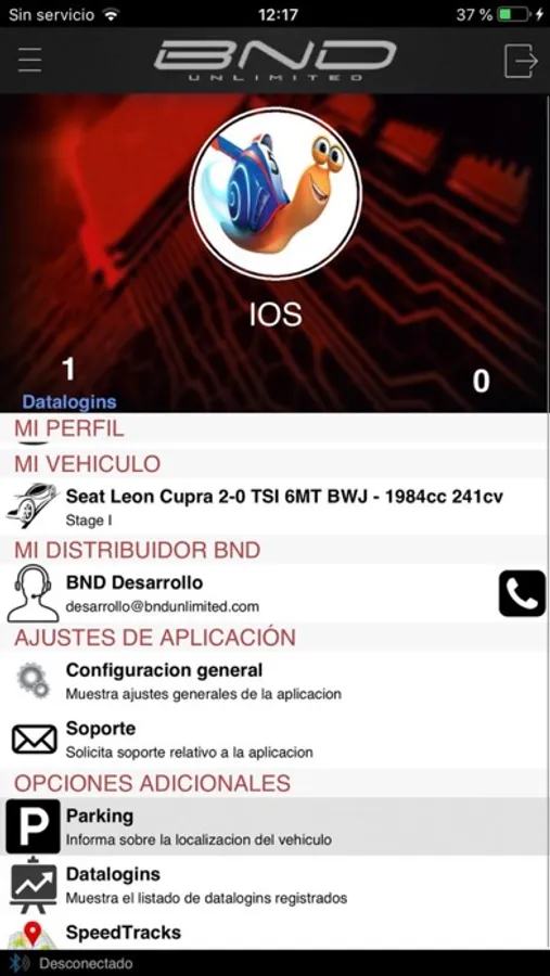 La aplicación está destinada para clientes de BND Unlimited con software especifico en la unidad de motor.