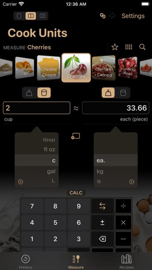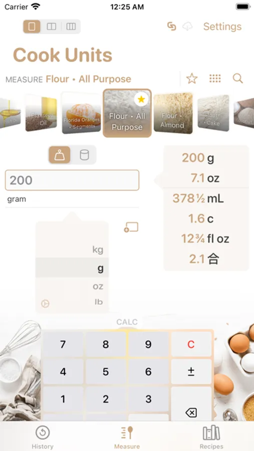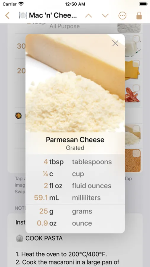 Just tap a recipe ingredient to see its equivalent measures in weight and volume on the fly.