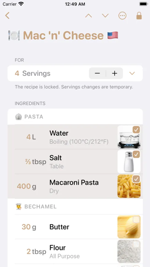 Adjust the number of servings for your recipe and the quantities will automatically resize accordingly with appropriate measuring units.