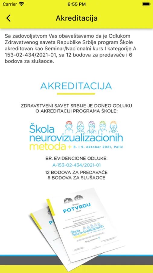 Aplikacija je namenjena mladim neurolozima učesnicima Škole neurovizualizacionih metoda, koja se održava 8. i 9. oktobra 2021. godine na Paliću.