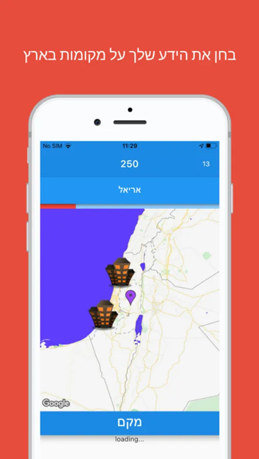 במשחק נותנים לכם שם של עיר או יישוב בארץ ואתם צריכים למקם אותו על מפה אילמת. ישנם יותר מ-600 ערים ויישובים שנמצאים במאגר שלנו!