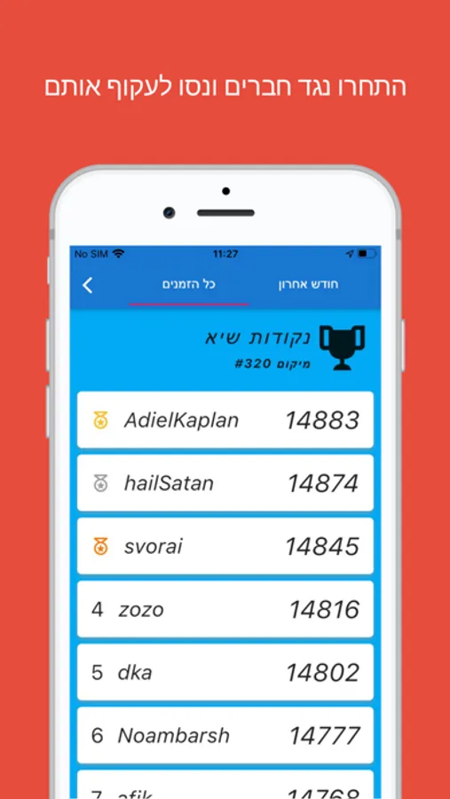 בנוסף, תוכלו להתחרות עם אנשים מהארץ ומהעולם ולראות איפה אתם ממוקמים ביחס אליהם.