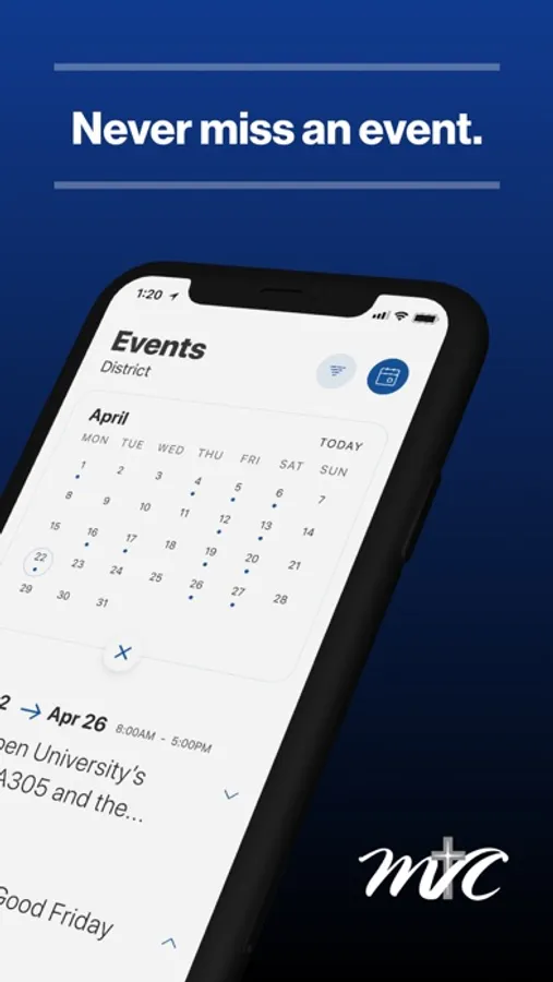 The event section shows a list of events throughout the district. Users can add an event to their calendar to share the event with friends and family with one tap.