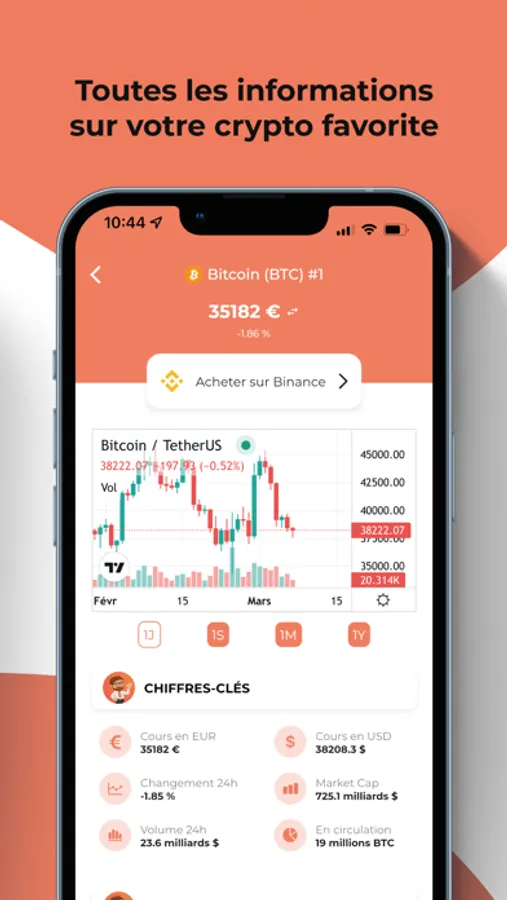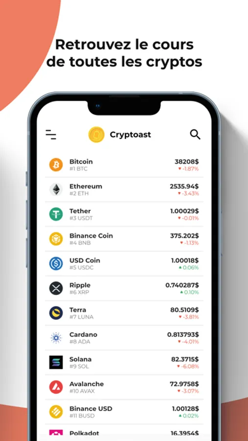 Il est possible de consulter le prix de nombreuses cryptos ainsi que le marketcap global du secteur des crypto-monnaies. Vous pouvez consulter le cours des crypto-monnaies en euro et en dollar mais aussi davantage d'informations comme :