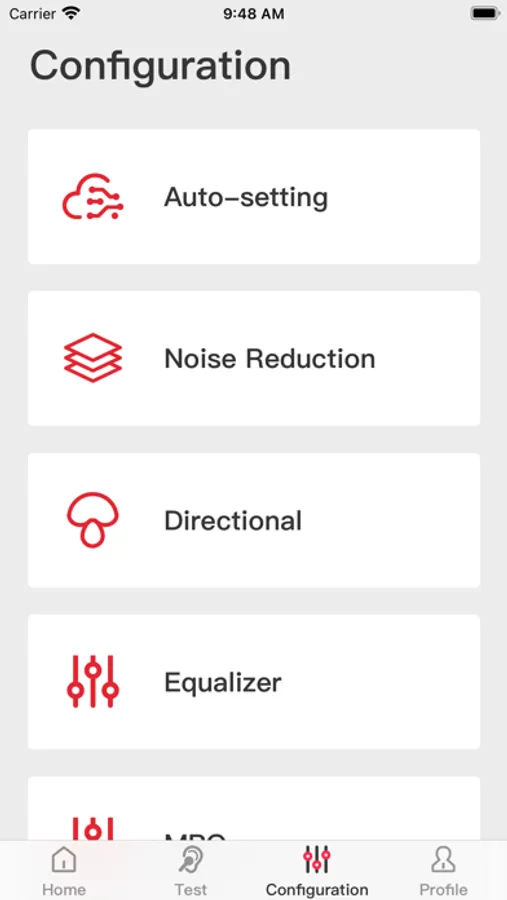 The APP controls the hearing aid's volume, switches modes, and tests your hearing.