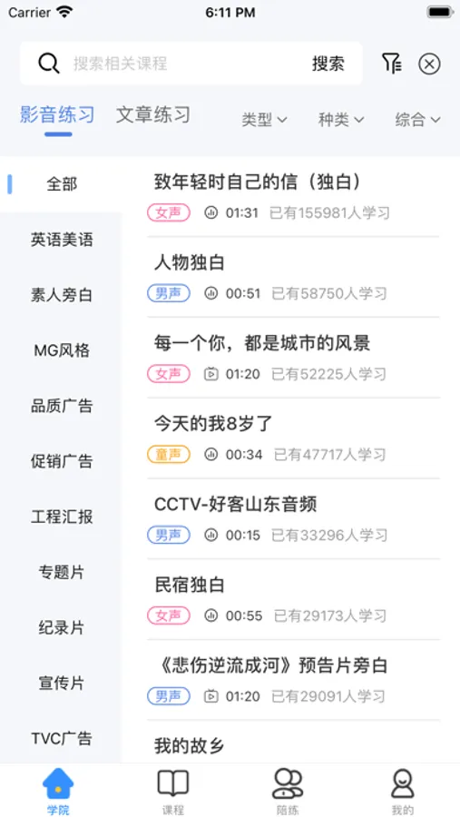 配音爱好者可在平台进行商业配音练习,逐渐提高配音水平,实现成为职业配音员的梦想。