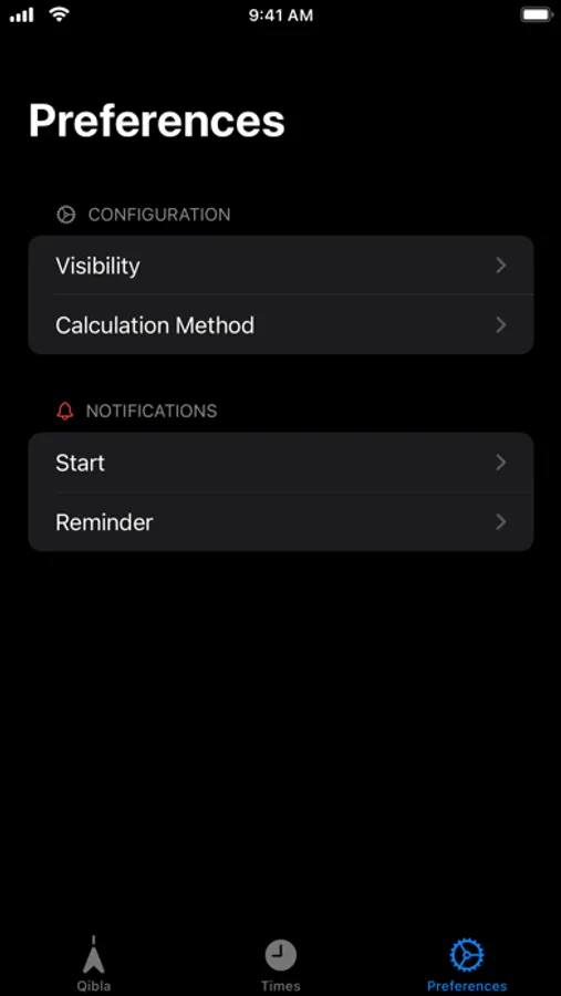 Enable notifications individually for each prayer time, and opt into reminder notifications that are sent 30 minutes before prayer times.