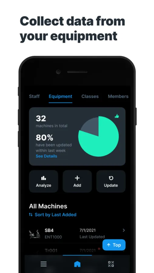 Scan QR codes on your SPIRIT equipment, so all your units will be remembered by the app and assigned to your fitness club, which provides you an easy access to any of your machines' error log and total usage information.