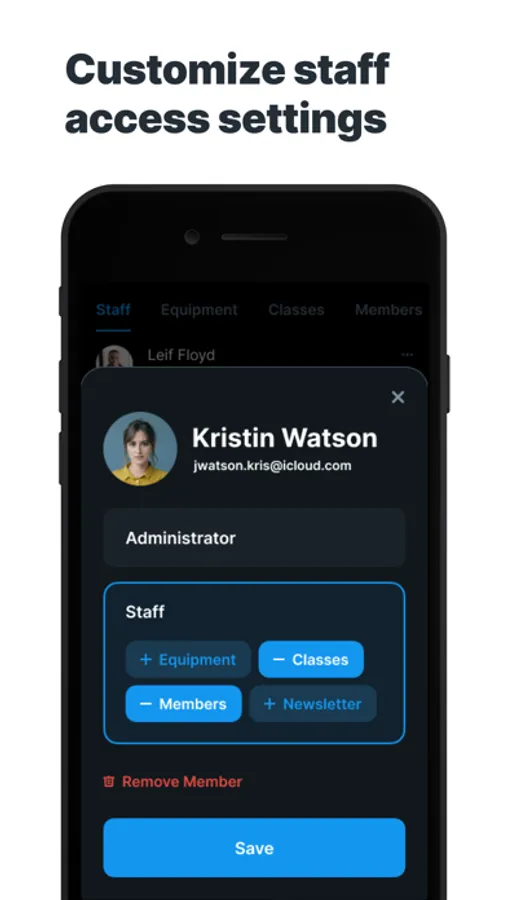 Staff members can have full or limited access to the app’s functions. Flexibility in assigning roles contributes to the safety and efficiency of your club’s workflow.