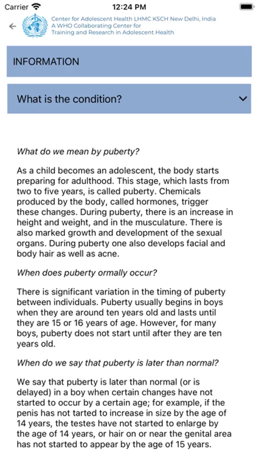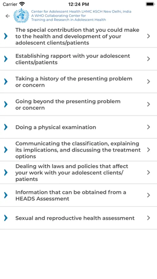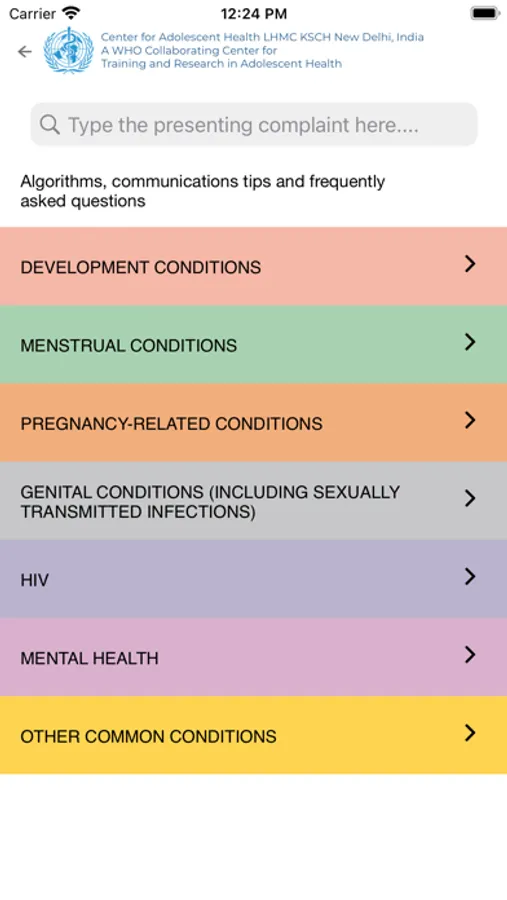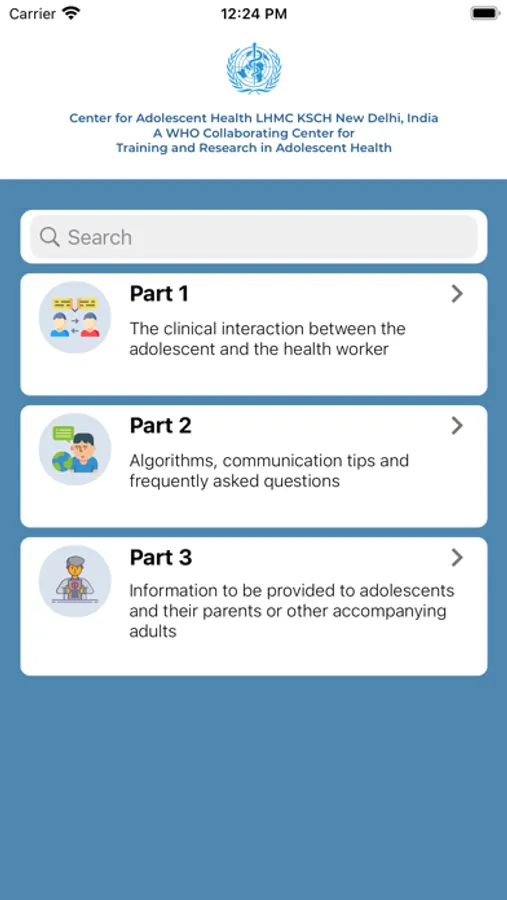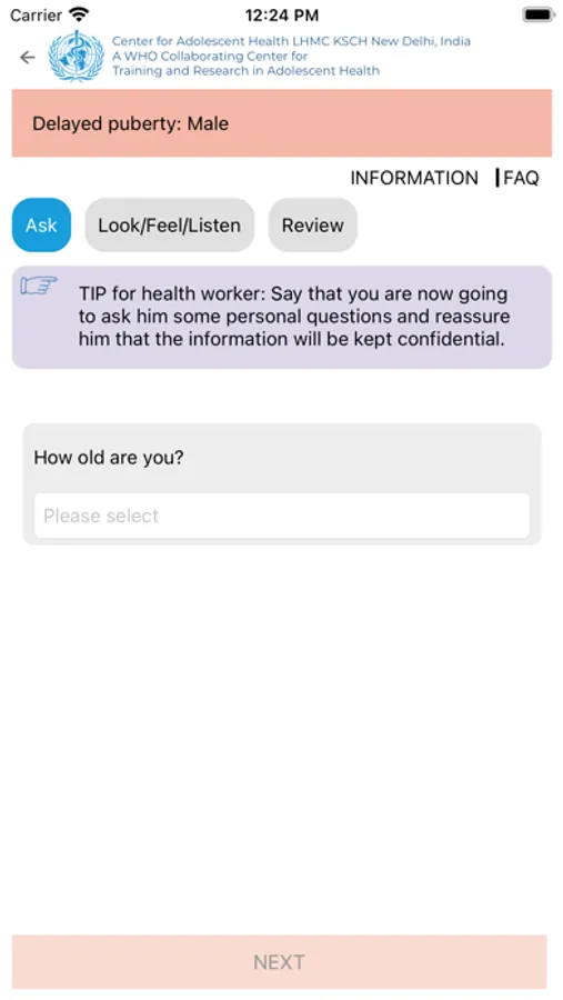 The Adolescent Job Aid has been converted into a mobile app where the user can search for and use an algorithm corresponding to the presenting complaint. This mobile app also prompts to take relevant history like HEADS and reproductive and sexual history. The mobile app then takes forward through the algorithm and provide a classification of the current illness/problem. The app also assists in providing the information on its management. The App also provides the information on 7 common topics as contained in the Adolescent Job Aid booklet.