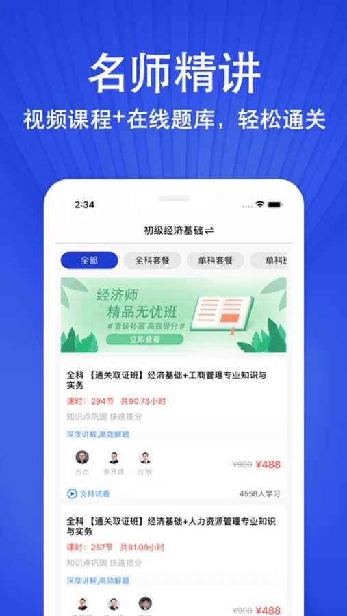 【名师精讲】视频课程+题库,助你通过初级经济师考试;