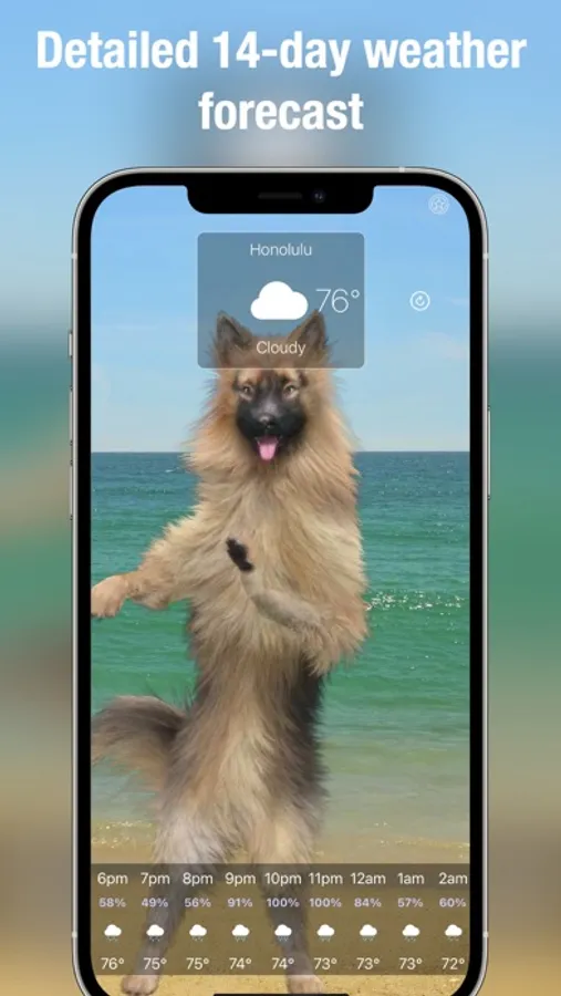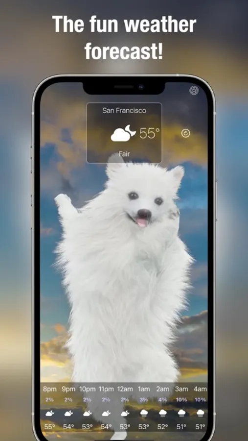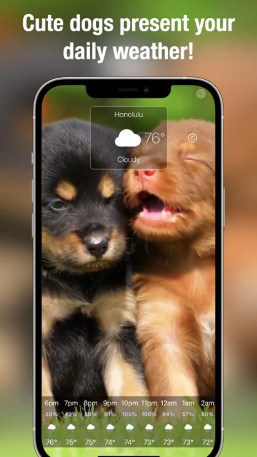 No matter what the weather forecast, your spirits will be lifted whenever you open the app. With a large selection of both hilarious dog animations dancing on your screen as well as cute dogs and puppies playing, performing cool tricks, resting and… just being dogs.