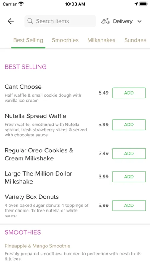 You can find our entire menu on our app, which is always up to date. Why not give an old favourite a go, or try something new. You can order online, even pay online, and get your scrumptious desserts delivered to you in the comfort of your own home.