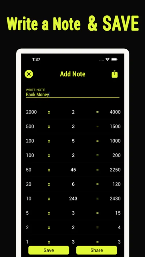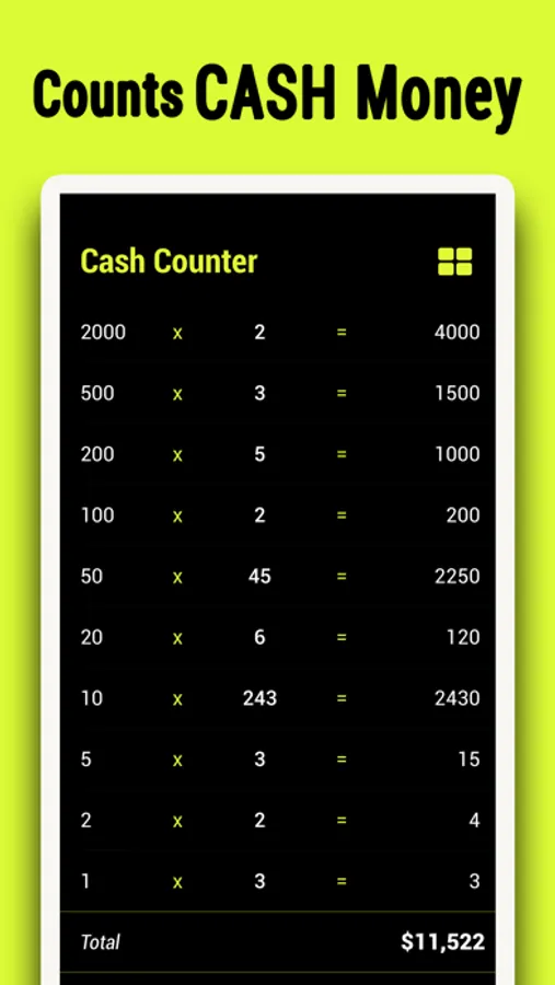 Cash Counters App gives you grand total amount easily & Share it with any one.