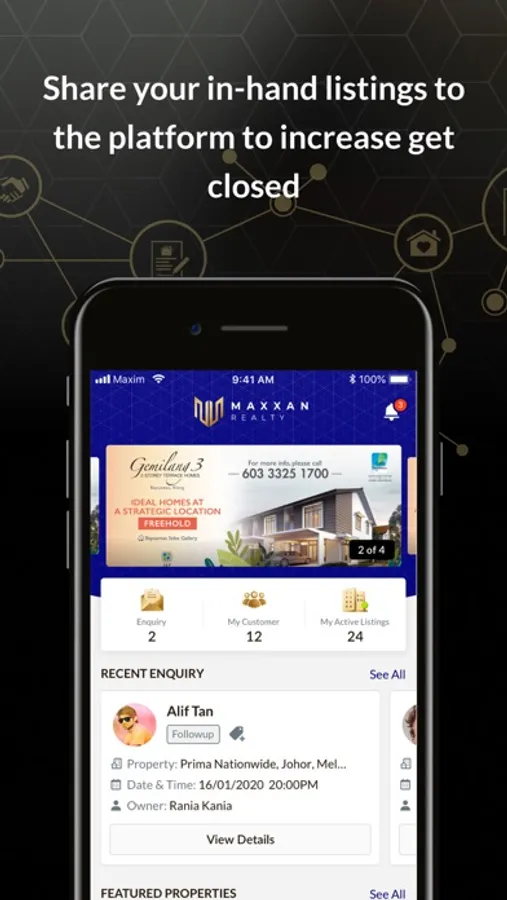 Replace physical with digital, the real estate application to assist every Maxxan agent to become more efficiency than ever in sales lead generation, follow up task on customers.