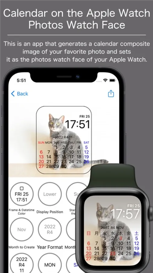 Calphace is an application that generates a composite image of a calendar on a photo of your choice and sets it on the photos watch face of your Apple Watch.