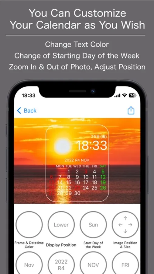 ・The color of each calendar letter (year, month, weekday, Saturday, and holiday) can be freely selected.