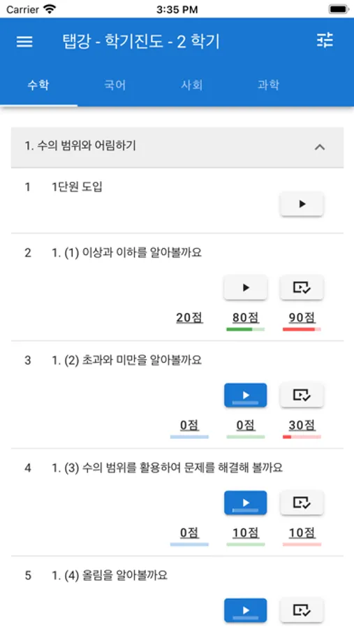 - 3~6학년 : 국어, 수학, 사회, 과학