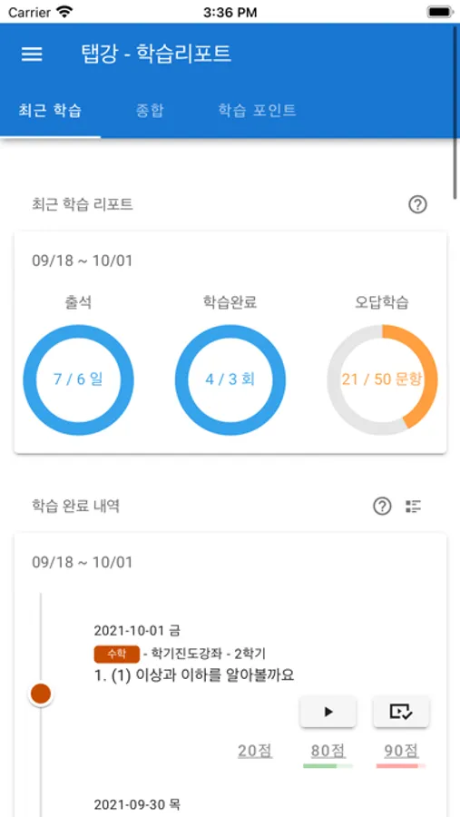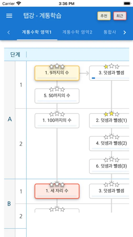 - 부족 단원은 계통수학으로 보충할 수 있습니다.