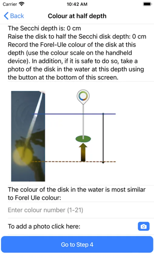 The Secchi disk is a white disk that is lowered into the water and the depth at which it disappears and reappears from sight is logged. This depth is proportional to the clarity or transparency of the water. The Forel Ule colour scale is used to classify the colour of natural waters.It consists of 21 colours ranging from blue to green to yellow to brown, and is used alongside the Secchi disk with the observer typically recording the colour of a submerged Secchi disk with this app. The app will guide you through each measurement, store location data, photos and additional observations.
