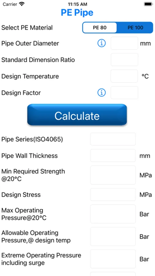 PE Pipe is a handy tool to evaluate the Polyethylene (PE) pipe material design properties based on pipe material class, temperature, pipe diameter and SDR selection. The tool helps in selecting the right pipe class (SDR) based on required design conditions such as temperature, required hydraulic pressure and area of application (i.e. water pipeline, sub-marine pipeline, gas pipeline).