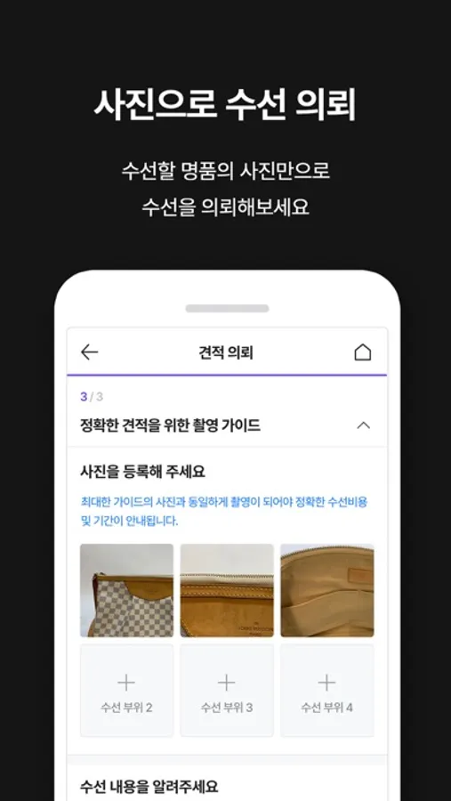► 사진만 있으면 모바일에서 편리하게 받아보는 명품 수선 서비스