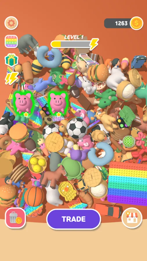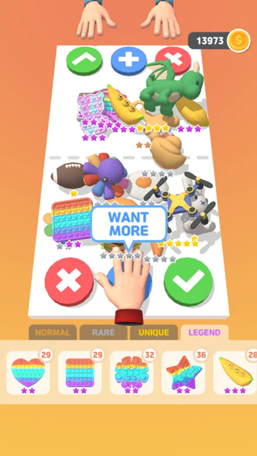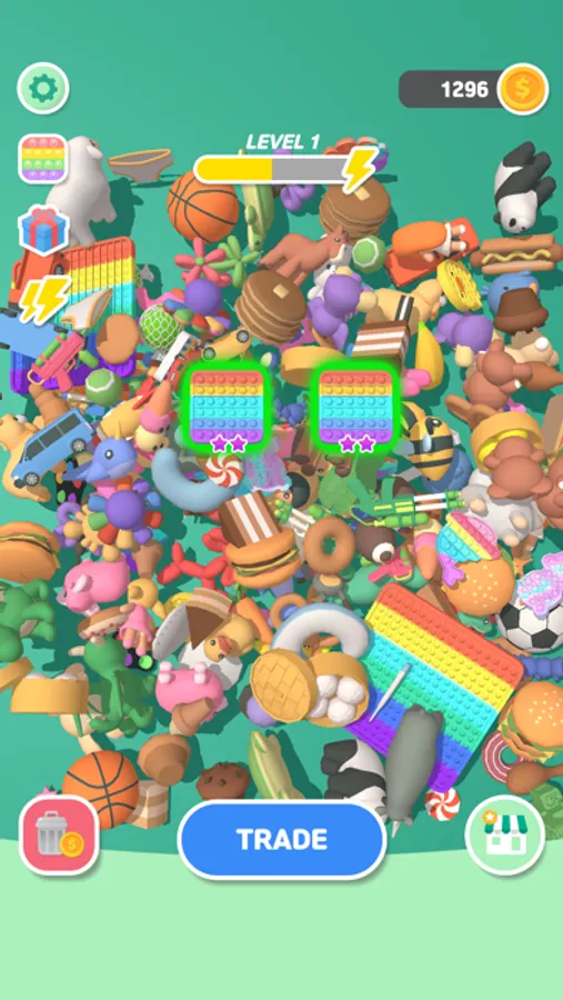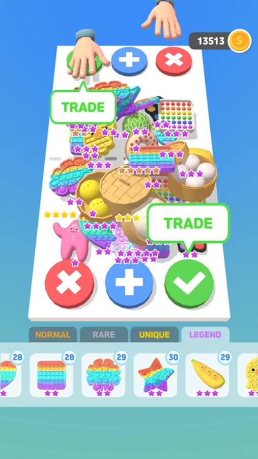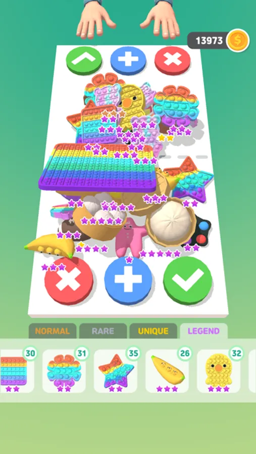 Collectable items: Soft and fluffy balls, slime toys / liquid monster-style toys, fidget toys, stress balls, jelly-style toys, dumplings, square push pops, heart push pops, giant push pops, fidget spinner pobits, ducks, dinosaurs, sticky balls, frogs, carrots, slippery fidgets, squishy, mochi, chicks, pigs, sticky rice, simkungran, octopus, and more!