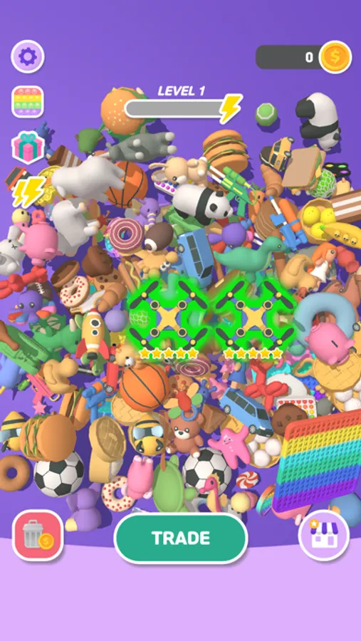 Put the toys, pop-its, and fidgets you want to trade on the trading board and watch what the other people offer.
