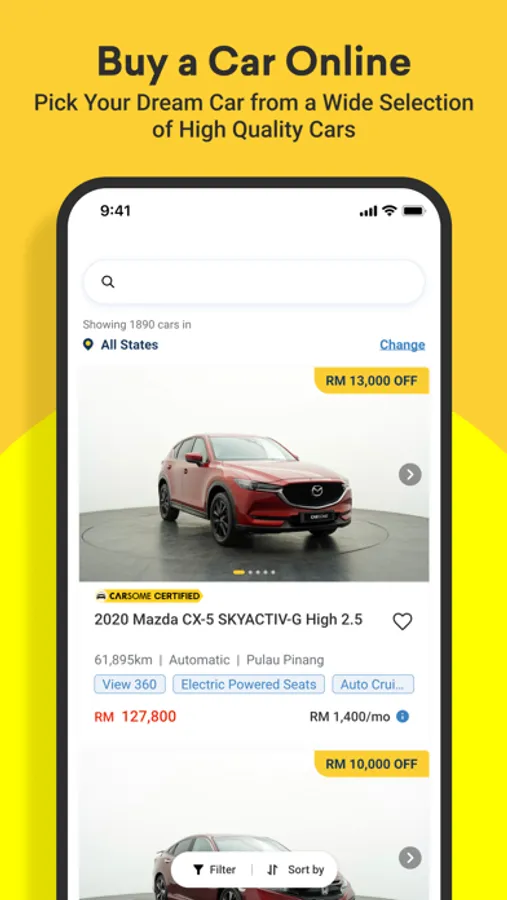Discover & buy used cars online with widest selection from brands including BMW, Ford, Honda, Hyundai, Kia, Lexus, MINI, Mazda, Mercedes-Benz, Mitsubishi, Nissan, Perodua, Peugeot, Proton, Subaru, Suzuki, Toyota, Volkswagen, and Volvo on the CARSOME used car mobile app.