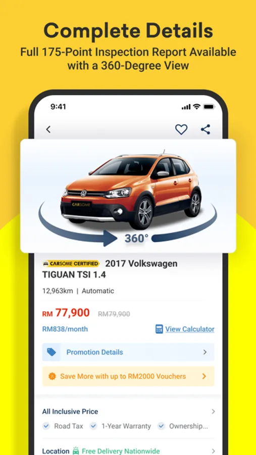 Our CARSOME promise ensures we deliver only the highest quality CARSOME certified cars. Our pledge includes these 4 promises.