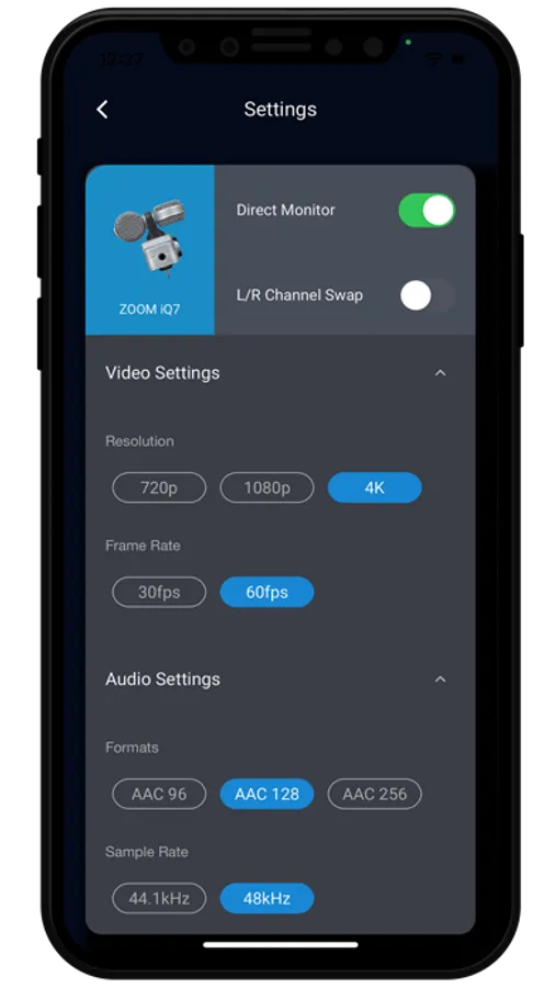 ■ Stereo high quality audio capturing using with ZOOM iQ series mic.