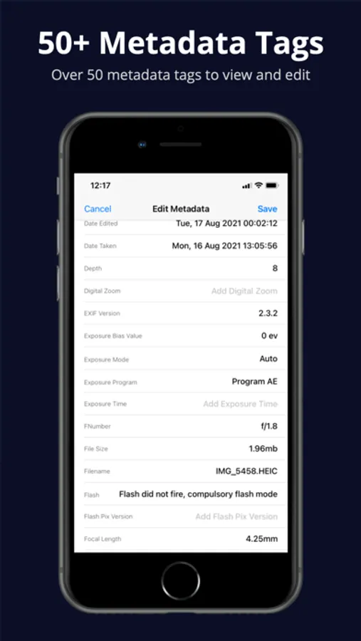 - View 50+ metadata tags for every photo.