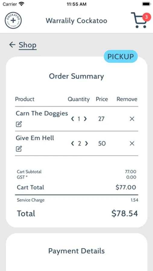 Use this app to place an order at Warralily Cockatoo for either Pickup or Delivery, or if you are in the venue, Dine-In.
