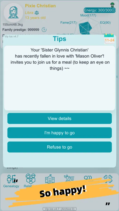 The game offers various features such as genealogy system, gambling, institute, real estate, stock market, pet system, inheritance system, cheating, homosexuality, prison, etc.