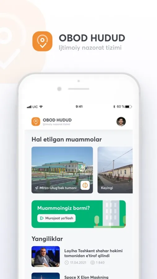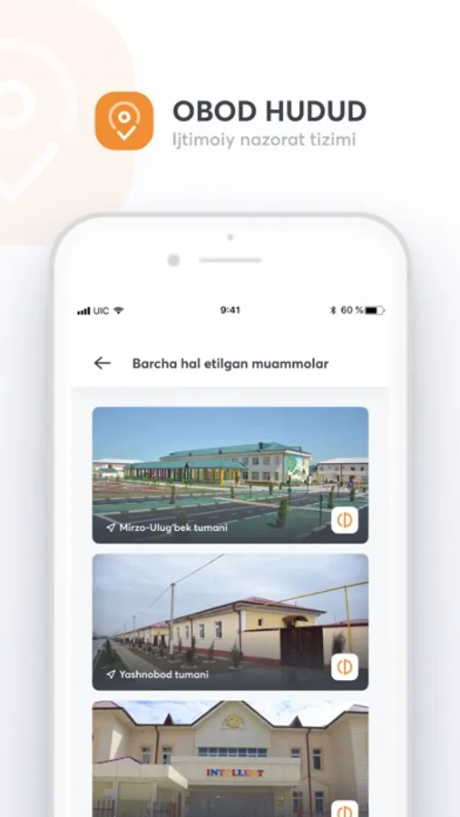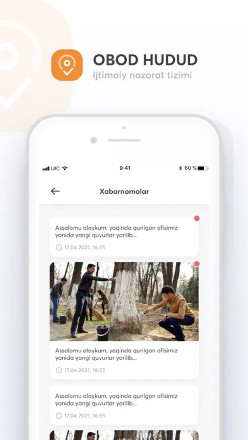 Obod Hudud ilovasi yordamida jamiyatimizdagi ekologik muammolarni oddiy fuqorolar bilan birgalikda hal qilamiz. Ushbu tizim orqali har bir inson fuqorolik pozitsiyasini nomoyon eta oladi. Hududingizdagi muammolar va kamchiliklarni ma'sul shaxslarga tez va qulay yetkazish uchun ilovani yuklab oling.