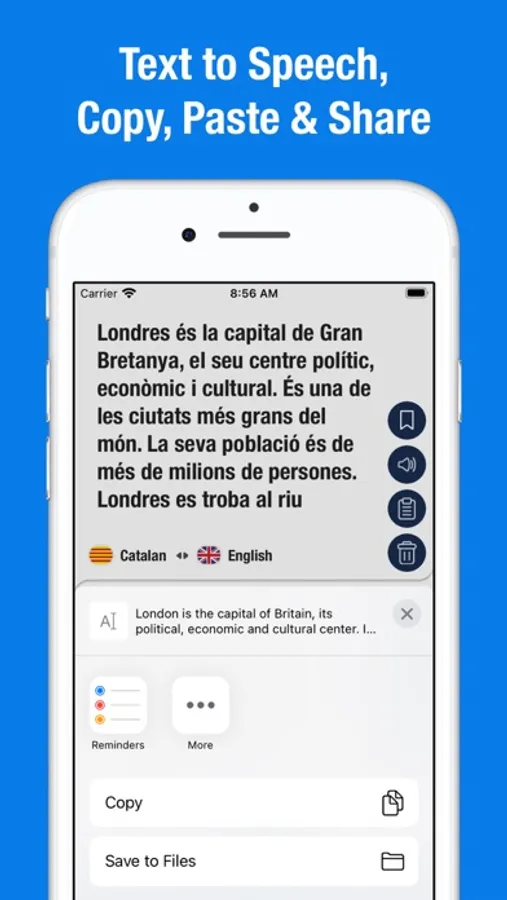 Quality useful application that helps to translate words into English or Catalan with one touch. Perfect for schoolchildren, teachers, students, adults, travellers and for anyone who is interested in studying foreign languages.