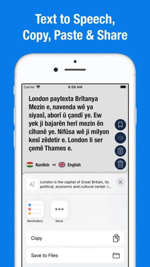 It is a translation tool that helps you break down language barriers. Excellent app for all who makes the first steps in learning Kurdish. Intuitive interface, easy navigation, quick result. Begin conversations confidently!