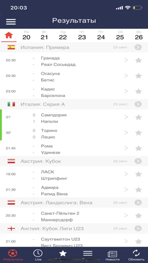 Конечно, результаты спорта не всегда радуют болельщиков, но знать обо всем, что произошло на поле важно в любом случае. Добавляй в избранное интересные именно тебе матчи футбола, расписание в All.Soccer не даст пропустить ни один важный матч.