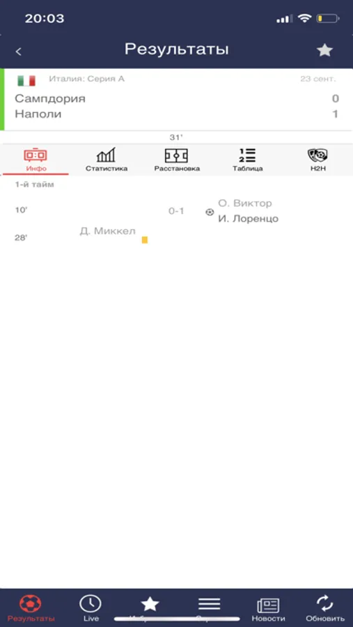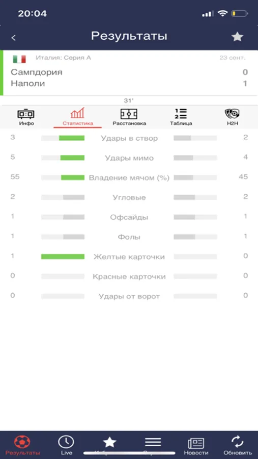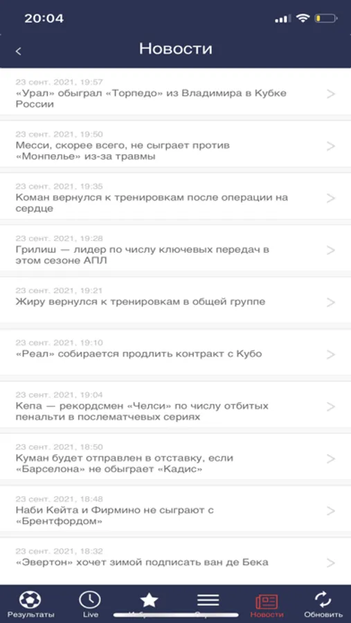 Футбол - наш любимый спорт! Онлайн результаты важнейших событий со всех арен мира в твоем смартфоне!