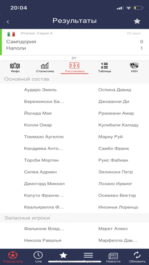Получай пуш-уведомления и будь в курсе результатов футбольных матчей, отслеживай ход игры и счет матча любимой команды.