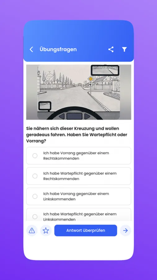 Mit unserer Führerschein App wird das Lernen für den Führerscheintest 2021 zum Kinderspiel. Unsere Führerscheinvorbereitung App hilft Ihnen dabei, sich optimal auf die Fragen des österreichischen Theorietests vorzubereiten und die Führerscheinprüfung im ersten Anlauf zu bestehen. In zufälliger Auswahl können Sie den gesamten Fragenkatalog durcharbeiten und anschließend unseren Übungstest für den Führerschein unter realen Bedingungen durchführen. Ein Countdown stoppt die Zeit, während Sie die Fragen aus dem offiziellen Führerschein-Fragenkatalog 2021 beantworten. In der App können Sie den Übungstest unbegrenzt wiederholen und jederzeit auf vergangene Tests zugreifen, um zu sehen, wo noch Verbesserungsbedarf besteht. Zusätzlich zu den Theoriefragen können Sie mit unserer Führerschein App die Bedeutung sämtlicher österreichischer Verkehrsschilder lernen, die der Übersichtlichkeit halber nach Kategorien sortiert sind. Wenn Sie zusätzlichen Lernbedarf haben, dann wechseln Sie zur Pro-Version unserer App und nehmen Soe an unseren Führerschein Videokursen teil, die Sie sicher und verständlich durch sämtliches Lernmaterial führen – die beste Hilfe, um ihren Theorietest 2021 zu bestehen.