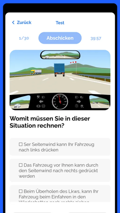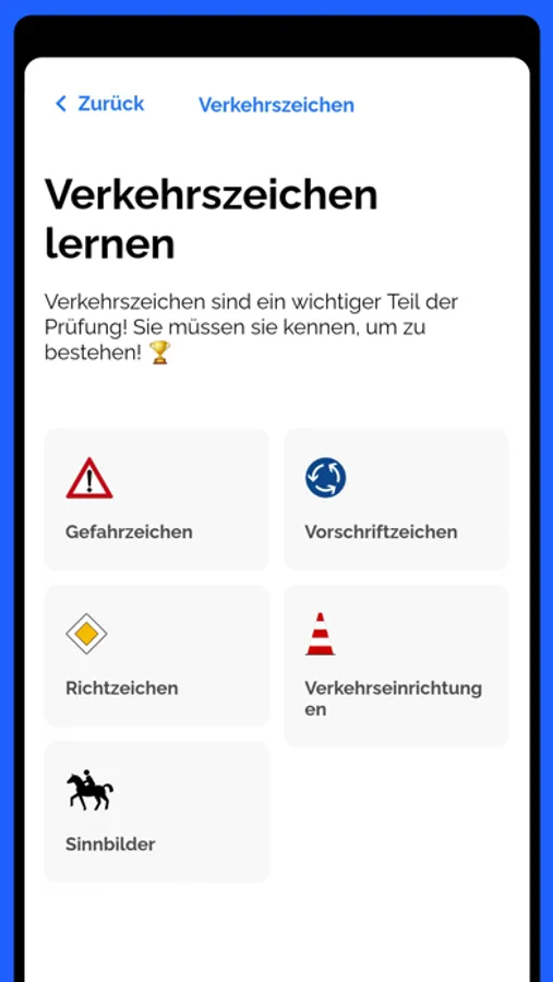 Führerschein Bestehen in Deutschland leicht gemacht. Ihre Theorieprüfung steht bevor und Sie haben Sorge, dass Sie nicht optimal vorbereitet sind? Unsere App ist der Führerschein Intensivkurs, den Sie brauchen, um den Theorietest in Deutschland im ersten Anlauf zu bestehen. Arbeiten Sie sich spielerisch durch sämtliche Fragen des offiziellen deutschen Fragenkatalogs für 2021 und lernen Sie die Bedeutung sämtlicher Verkehrsschilder im Handumdrehen. Zusätzlich bietet unsere App Ihnen die Möglichkeit einen Übungstest zu absolvieren, der mittels eines Countdowns dieselben Testbedingungen suggeriert wie die Führerscheinprüfung in der Fahrschule. In unserer Führerschein Handy App können Sie den Test so oft wiederholen wie Sie möchten und anschließend anhand des Testverzeichnisses erkennen, bei welchen Fragen des Führerscheintests Sie noch Hilfe benötigen. Wenn Sie zusätzliche Unterstützung und nützliche Tipps zum Führerschein in Deutschland möchten, können Sie jederzeit zur Premium Version unserer Führerschein App wechseln, wo Sie mit Hilfe unserer Führerschein Videokurse optimal auf ihre Theorieprüfung vorbereitet werden.