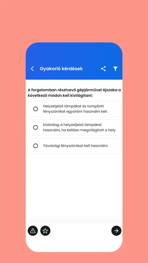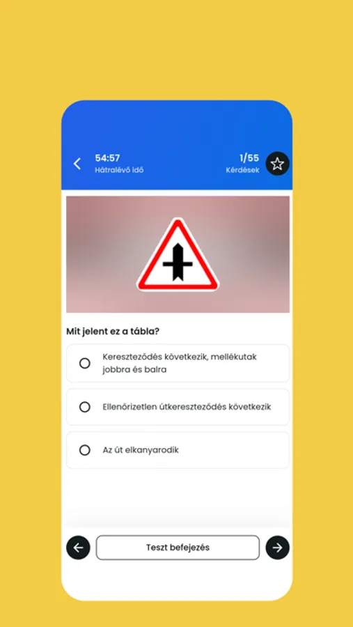 Ha izzadó tenyerek nélkül szeretné megfogni a tollat a vizsga napján szerezzen sziklaszilárd magabiztosságot kresz tesztünk segítségével. Az időkorlátos, visszaszámlálóval ellátott felületen szoktathatja magát az igazi vizsga körülményeihez így nem érheti meglepetés. A legtöbb vizsgázót nem tudásanyag hiánya vagy a nem elégséges készülés tartja vissza a kresz vizsga sikeres letételétől, hanem a vizsgázás körülményeinek szokatlansága. Engedje meg, hogy segítsünk!