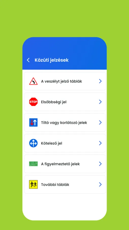 Az applikációnkban megtalálható az összes 2021-ben joghatályos útjelző tábla, így nem kell aggódnia, hogy a tudásanyag, amiből készül eléggé friss vagy sem. Rendszerezett adatbázisunk segítségével mobiljáról bárhonnan hozzáférhet mindehhez amikor csak kívánja.