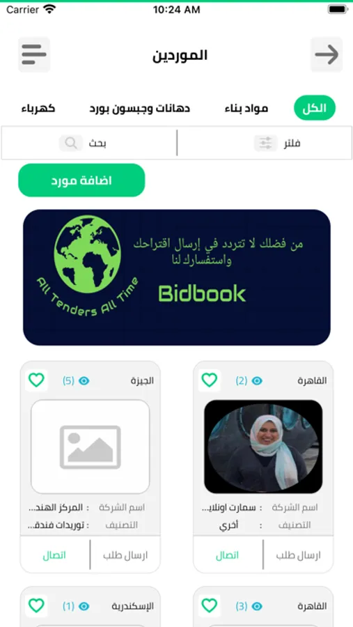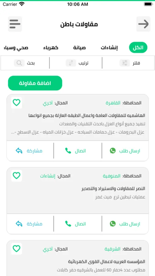 منصة المقاولات ابليكشن يضم العديد من المناقصات والوظائف.