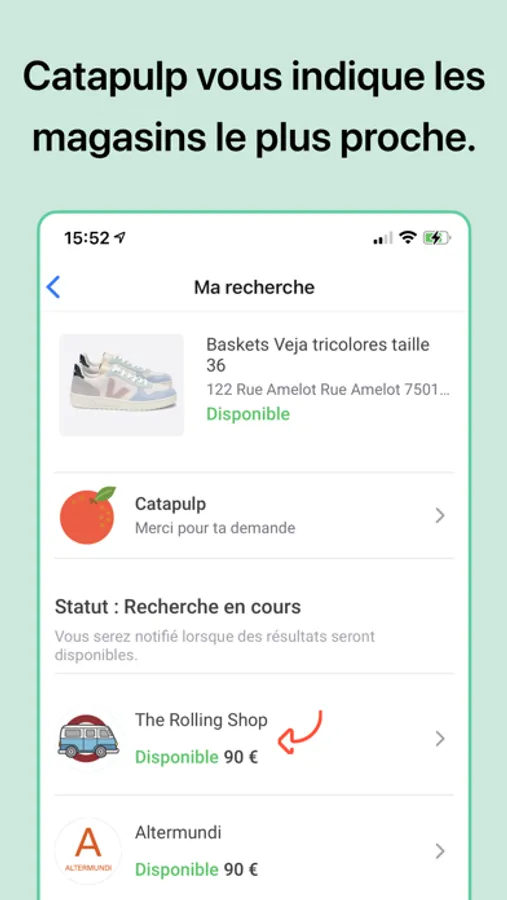 Catapulp vous indique le nom et l'adresse du magasin le plus proche dans lequel le produit est disponible et en stock.